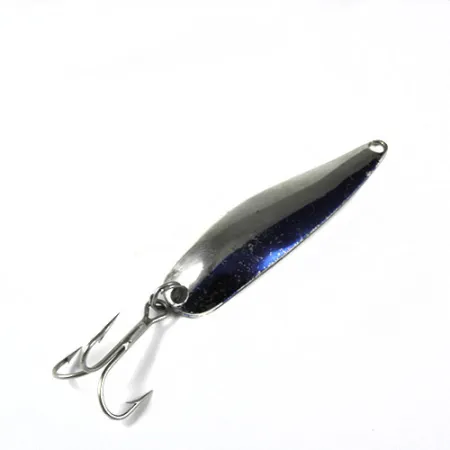 Šios JAV gamybos vartiklės grakštus kūnas sveria lengvus 8 g (1/4 oz) ir pasižymi išskirtine dviejų tonų estetika. Viena išgaubtos pusės dalis padengta ryškiu, poliruotu nikeliu, o kita – giliai mėlynais metalo dažais su subtiliais blizgučiais. Kitoje pusėje aiškiai įspaustas Marathon pavadinimas ir jo kilmės šalis JAV – praėjusio amžiaus vidurio žvejybos įrankių gamybos požymiai. 6 cm (2 1/4") ilgio masalas turi klasikinį trišakį kabliuką, pritvirtintą patikimu žiedeliu. Būklė įvertinta solidžiais 4/5 balais, paviršius švarus, o kabliukų smaigaliai aštrūs, kas rodo kruopštų saugojimą bėgant metams. Šis konkretus 0387 modelis yra nepakeičiamas žvejojant upėtakius ar ešerines žuvis, kai reikalingas mažesnis masalo profilis.