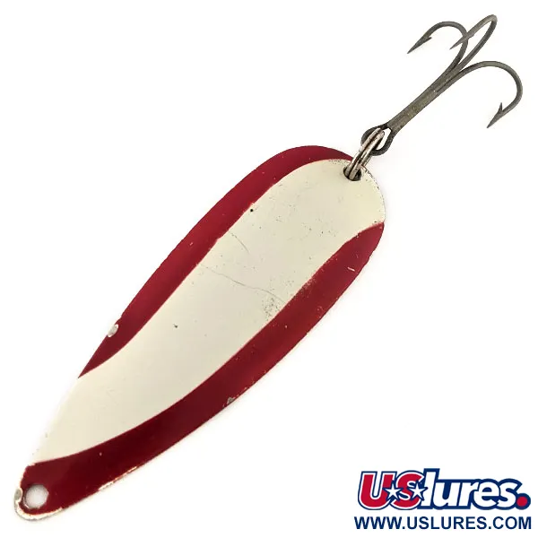 Nikeliavimas įgaubtoje pusėje pasižymi ryškiu „MARATHON“ antspaudu – Viskonsino įmonės, gaminusios masalus nuo 1929 iki 1979 m., parašu. Ši 7 cm (2 3/4") ilgio blizgė yra su klasikinėmis raudonomis ir baltomis įstrižomis juostomis ant poliruoto nikelio pagrindo. 14 g (1/2 oz) svorio masalas yra skirtas spiningavimui gilesnėse struktūrose arba palei žolynų linijas. Šis egzempliorius, pažymėtas produkto kodu 11280, yra 5/5 būklės, išlaikęs originalų dažų blizgesį ir švarius metalinius paviršius. Furnitūrą sudaro tvirtas žiedelis ir vienas trišakis kablys, atspindintys patvarius vidurio amžiaus Amerikos žūklės įrankių gamybos standartus. Išgaubta pusė padengta lygiu emaliu, o kita pusė užtikrina didelio kontrasto atspindintį paviršių, užtikrinantį matomumą įvairiomis vandens sąlygomis.