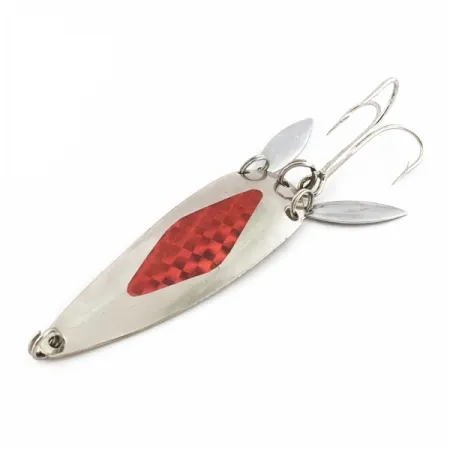 Du maži sidabriniai lapeliai traukiami už chromuoto korpuso, suteikdami papildomą blyksnį ir vizualų judesį tiesiai kibimo zonoje. Atspindintis paviršius turi tekstūruotą raudoną „deimantinių žvynų“ intarpą išgaubtos pusės centre, užtikrinantį didelį matomumą po vandeniu. 7,5 cm (3") ilgio ir 17 g (3/5 oz) svorio blizgės svorio pasiskirstymas puikiai tinka tolimiems metimams arba tolygiam trolingui. Šį modelį 1929–1979 m. gamino Marathon Bait Company, derindama blizgės profilį su papildomais lapelių sukeliamais virpesiais. Šis egzempliorius yra 5/5 būklės, atspindinti apdaila ir raudonas žvynų lipdukas išliko švarūs ir nepažeisti. Gaminio kodas 24602.