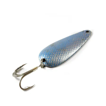 Išskirtinė mėlyna ir nikelio žvynų apdaila dengia iškiliąją šios 6 cm (2 1/4 colio) blizgės pusę, suteikdama tekstūrinę išvaizdą, kuri dešimtmečius buvo Viskonsino žvejų pagrindas. Ant nikeliuotos nugarėlės esantis įspaudas identifikuoja tai kaip autentišką Marathon, pagamintą Marathon Bait Company, kuri gamino masalus JAV nuo 1929 iki 1979 metų. Sverdama 9 g (1/3 uncijos), blizgė išlaikė savo originalų trišakį kabliuką ir turi produkto kodą 3015. Jos 4/5 būklė pasižymi švelniu paviršiaus nusidėvėjimu, kuris po mėlynais žvynų dažais atidengia blizgų nikelio korpusą, išlaikant vintažinį charakterį, o pačiam metalui išliekant švariam. Įspaustas užrašas nugarėlėje išlieka ryškus, suteikdamas aiškų ryšį su ilga įmonės žvejybos įrankių gamybos istorija Amerikos Vidurio Vakaruose.