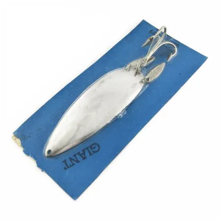 Nikelio danga suteikia šiai 10 cm ilgio vartyklei ryškų blizgesį, kuris išliko toks pat skaisus kaip ir gamybos dieną. 21 g sverianti blizgė priklauso „Marathon Bait Company“ „Giant“ serijai – ši kompanija per savo gyvavimo penkiasdešimtmetį nuo 1929 iki 1979 metų buvo didžiausia masalų gamintoja Viskonsine. Ant mėlyno kartoninio padėkliuko išspaustas užrašas „GIANT“ patvirtina jos tapatybę bei vietą kataloge pagal prekės kodą 24088. Šis konkretus masalas nebuvo naudotas ir vis dar pritvirtintas prie originalios pakuotės, todėl tai yra vertingas radinys XX a. vidurio amerikietiškų žūklės įrankių kolekcininkams. Konstrukcija pasižymi klasikiniu lašo formos profiliu, derinamu su tvirtu trišakiu kabliuku ir papildomu viliokliu-lapeliu, pritvirtintu žiedeliu gale. Visa furnitūra yra itin švari, o tai atspindi aukštus JAV įsikūrusios „Marathon“ gamybos kokybės standartus.