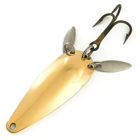 Auksuotas metalas sudaro pagrindą šiai 6 cm (2 1/4 colio) blizgei, kuri yra puikus vidurio amžiaus Amerikos meistriškumo pavyzdys. Dvi sidabrinės garsinės plokštelės sumontuotos ant galinio žiedelio šalia trišakio kabliuko; jos sukurtos atspindėti šviesą ir vizualiai stimuliuoti žuvį kibimo zonoje. Vidinėje įgaubtoje pusėje aiškiai įspaustas Marathon pavadinimas – Viskonsine įsikūrusios įmonės, kuri pirmavo valstijos žūklės reikmenų gamyboje nuo 1929 iki 1979 metų, ženklas. Šis konkretus pavyzdys, pažymėtas prekės kodu 6286, sveria 12 g (2/5 oz) ir yra 5/5 būklės. Konstrukcija pasižymi plačia kilpele priekyje, tinkančia storam monofilamentiniam valui arba pavadėliui. Tamsesnė trišakio kabliuko apdaila sukuria ryškų kontrastą su poliruotu auksiniu blizgės korpusu.