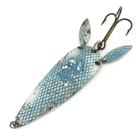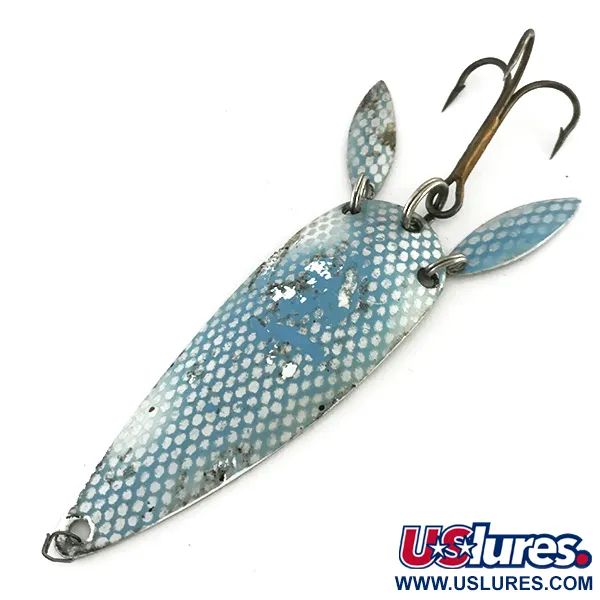 Ryškus mėlynos ir baltos spalvos korio raštas puošia šios 7,5 cm (3") blizgės priekinį paviršių. Gaminys žymimas 8429 kodu; jo gale žiedeliais pritvirtinti du maži, gluosnio lapo formos sūkuriniai lapeliai. Šie atspindintys lapeliai suteikia papildomą blyksnį ir padeda paslėpti bronzuotą trišakį kabliuką. 17 g (3/5 oz) svorio masalas yra klasikinio dizaino, sukurtas Viskonsine veikusios „Marathon Bait Company“ (1929–1979 m.). Kitoje pusėje yra poliruoto nikelio apdaila, ant kurios metale matosi „M-1“ ir „NAVY“ įspaudai. Šiuo metu būklė vertinama 4/5; dažų sluoksnis šiek tiek nusitrynęs, tačiau išlaiko savitą tekstūrinę išvaizdą.