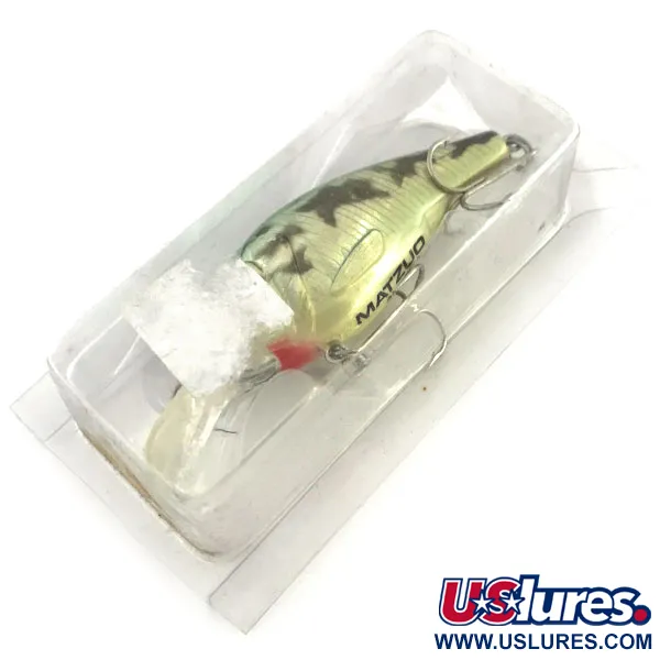 Šis 11 g sveriantis „Matzuo Crank“ pasižymi ryškiu „Frog“ spalvinimo raštu, pabrėžiančiu gamintojo dėmesį realistiškai apdailai. Dažymas pereina iš tamsiai žalios dėmėtos nugaros į blizgančius, žvynų rašto šonus ir šviesų pilvą, o netoli uodegos aiškiai įspaustas „MATZUO“ pavadinimas. 6 cm ilgio vobleris turi skaidrų plastikinį liežuvėlį, skirtą pasiekti 0,3–1,2 m gylį. Nors pakuotė nebėra sandari ar pilna, masalas yra nenaudotas, be jokių nusidėvėjimo ar buvimo vandenyje žymių. Konstrukciją sudaro du pilvo srityje sumontuoti trišakiai kabliukai ir sustiprintas žiedelis valui tvirtinti. Tai plaukiantis masalas, skirtas spiningavimui, tinkantis gaudyti ešerius, upėtakius ar lydekas. Mažas raudonas spalvos akcentas po smakru suteikia ryškų atakos tašką spindinčiame kūne. Šis 9308 modelis išsiskiria didelėmis, ryškiomis akimis, kurios tapo šio prekės ženklo vizitine kortele tuo laikotarpiu.