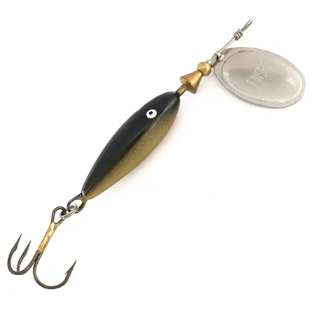 Sidabruotas lapelis su įspaustu žodžiu „FIN“ yra pagrindinis šio Matzuo FinSpin (produkto kodas 7891) vizualinis elementas. 1/4 oz (7 g) sveriantis masalas sukonstruotas aplink pasunkintą, lašo formos korpusą su bronzos ir žalvario metalo apdaila. Bendras ilgis yra 3 1/4" (8 cm). Masalą sudaro tvirta vielos ašis, žalvarinis kūginis tarpiklis ir maža metalinė karoliukas, padedantis suktis ant laikiklio sumontuotam lapeliui. Korpusas pasižymi švariu perėjimu iš tamsios viršutinės dalies į ryškią metalinę apačią, kurią pabrėžia vienas baltas akies taškas. Šis vintažinis JAV gamybos egzempliorius turi aštrų trišakį kabliuką ir išlaiko pradinį blizgesį, todėl jo būklė vertinama 5/5.