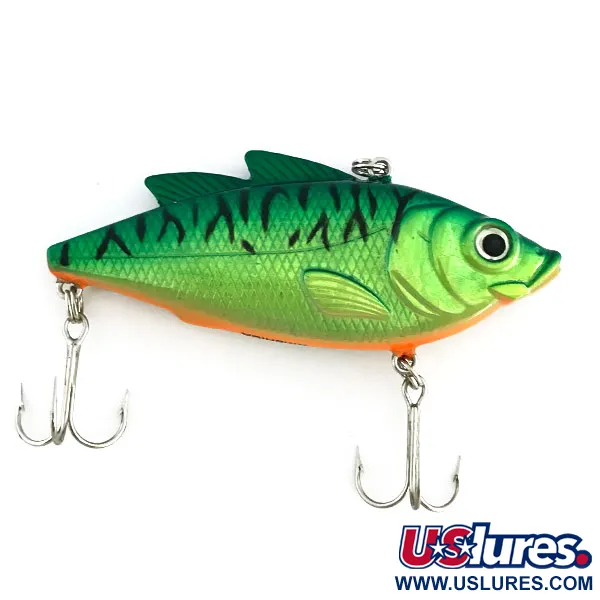Sveriantis 1/2 oz (14 g), šis skęstantis vibruojantis vobleris yra sukurtas universaliam naudojimui įvairiuose gyliuose. 7,5 cm (3") profilis pasižymi ryškiu Green Tiger raštu, pereinančiu į šiltą oranžinį pilvelį su tamsiais vertikaliais dryžiais ir tekstūruota žvynų apdaila. Išskirtinė Matzuo Lipless (produkto kodas 9020) savybė – švytėjimas tamsoje (glow-in-the-dark), suteikiantis pranašumą žvejojant prasto apšvietimo sąlygomis arba velkiaujant giliai gaudant standartinius starkius ir lydekas. Viršutinis valo tvirtinimas ir vidinė barškėjimo sistema apibrėžia jo konstrukciją, o du aštrūs trišakiai kabliukai yra puikios būklės. Šis egzempliorius įvertintas 5/5 balais, pasižymi švariais paviršiais ir originalia furnitūra. Iš pradžių JAV rinkai gamintas barškantis masalas išlieka patikimas pasirinkimas žvejams, gaudantiems ešerius, upėtakius ir net lašišas.