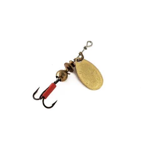 Ši klasikinė sukriukė, kurios ilgis nuo kilpelės iki kabliuko linkio yra lygiai 4 cm, pasižymi Prancūzijoje pagamintų komponentų tikslumu. Mepps entuziastai įvertins ryškią auksinę šio 0 dydžio modelio lapelio apdailą – tai spalvos pasirinkimas, siekiantis originalų 1938 m. Andre Meulnart dizainą, skirtą ryškiam blyksniui. Kūnelį sudaro pakopiniai žalvariniai karoliukai ir centrinis sferinis svoris, vedantis prie aštraus trišakio kabliuko, papuošto firminiu raudonu kembriku. Būklės įvertinimas 5/5 rodo, kad masalas yra išskirtinai gerai prižiūrėtas, o visos detalės tvirtai laikosi. Šis konkretus pavyzdys, identifikuojamas pagal prekės kodą 11120, sveria 2,5 g ir buvo surinktas JAV naudojant originalias dalis iš Prancūzijos. Vielos ašis yra tiesi, laikanti kūgio formos lankelį, kuris leidžia lapeliui laisvai suktis aplink centrinę ašį.