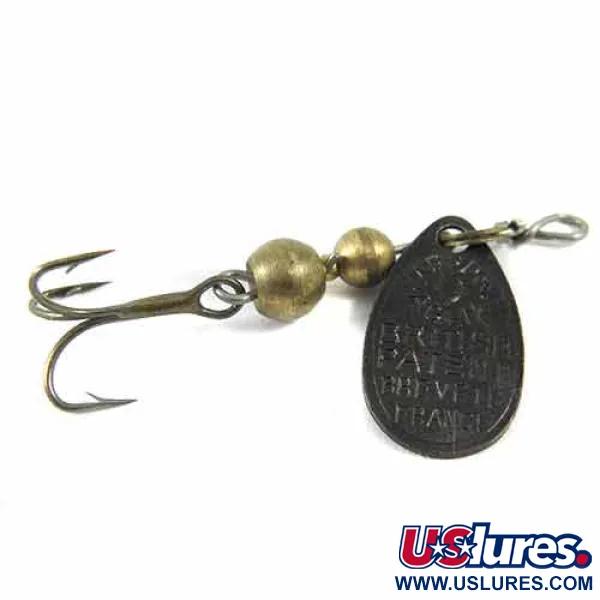 Ši itin lengva, vos 2,2 g (1/16 oz) sverianti sukriukė yra Mepps paveldo pagrindas. Ant tamsios spalvos lapelio aiškiai išspausti užrašai „BRITISH PATENT“ ir „CHEVETTE FRANCE“, pabrėžiantys europietišką jos komponentų kilmę prieš surenkant JAV. 4 cm (1 1/2") ilgio masalo korpusas sudarytas iš dviejų masyvių žalvarinių karoliukų, kurie suteikia reikiamą svorį metimams su lengvais valais. Šis konkretus pavyzdys, pažymėtas produkto kodu 1355, yra 4/5 būklės, išlaikantis švarią juodo lapelio ir vielos rėmelio išvaizdą. Aglia konstrukcijoje naudojama tiksli kūginės rotacijos sistema, leidžianti lapeliui laisvai suktis aplink žalvarinius karoliukus. Aštrus, bronzuotas trišakis kablys užbaigia šį masalą, skirtą atsargiems upėtakių, krapių ar ešerių kibimams.