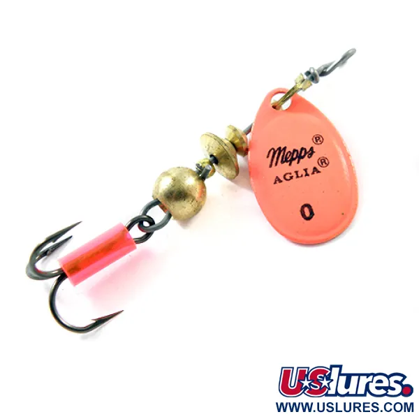Fluorescenciniai oranžiniai dažai dengia šios klasikinės 0 dydžio sukriukės lašo formos lapelį, užtikrindami puikų matomumą net ir sudrumstame vandenyje. Šis 2,5 g (3/32 oz) svorio ir 4,5 cm (1 3/4") ilgio modelis, turintis prekės kodą 1810, yra pagrindinis įrankis žvejams, žvejojantiems upėtakius ir ešerius lengvais įrankiais. Lapelis pasižymi aiškiu juodu antspaudu su Mepps logotipu ir dydžio žymėjimu, o korpusas sudarytas iš tradicinių žalvario karoliukų. Šie komponentai buvo pagaminti Prancūzijoje pagal 1938 m. Andre Meulnart dizainą, o vėliau surinkti JAV. Išskirtinis rausvai oranžinis kembrikas dengia aštraus trišakio kabliuko kotelį, sukurdamas papildomą taikinį persekiojančioms žuvims. Įvertintas 5/5, masalas yra puikios būklės, pasižymi ryškiu, lygiu paviršiumi ir švaria furnitūra. Surinkimas turi tikslią kūginės rotacijos sistemą, kuri leidžia lapeliui sklandžiai suktis aplink centrinę vielos ašį net ir lėtai traukiant.