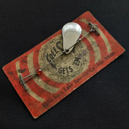 Nikeliuotas lašo formos lapelis suformuoja šios Mille Lacs Lake Spinner sukrės išvaizdą. Masalas vis dar pritvirtintas prie originalios raudonos ir auksinės spalvos pakuotės-kortelės; jis yra nenaudotas ir išlaikęs tokią pačią būklę, kokios buvo išleidžiant iš Mille Lacs Lake Spinner Co. gamyklos Ailo mieste, Minesotoje. Ant vielos ašies, kurios ilgis siekia 6 cm, yra užvertas vienas briaunotas raudonas karoliukas. Šis konkretus modelis, kurio prekės kodas yra 20622, pasižymi nedideliu 1 g svoriu. Konstrukcijoje naudojamas paprastas lapelio laikiklis ir rankomis susuktos vielos kilpelės abiejuose galuose, o tai atspindi klasikinį JAV gaminamų ežerinių žūklės įrankių stilių.