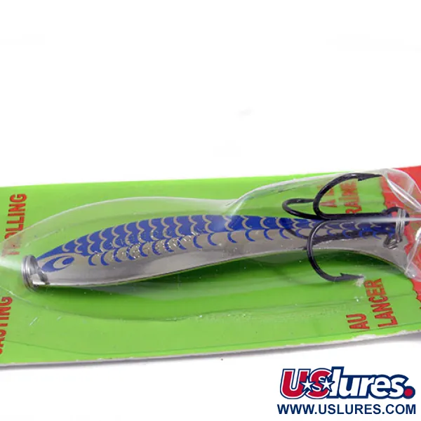Poliruoto nikelio apdaila yra pagrindas sodriai mėlynam žvynų raštui ant šio Kanadoje pagaminto masalo, žymimo kodu 0725. Williams gaminamas Mooselook wobbler išlieka klasikinis pasirinkimas žvejojant ežerinius upėtakius ir gėlavandenes lašišas tiek spiningaujant, tiek velkiaujant. 9,5 cm (3 3/4") kūnas išlaiko originalią nenaudoto eksponato išvaizdą, vis dar esantis būdingoje žalioje ir raudonoje J.A. Greene Inc. lizdinėje pakuotėje. 10 g (1/3 oz) svorio blizgės gamyba atspindi aukštus metalo apdirbimo standartus, būdingus paveldo Šiaurės Amerikos žūklės įrankiams. Masalas sukomplektuotas su tvirtu trišakiu kabliuku, pritvirtintu per žiedelį uodegoje, o prekės ženklo parašas aiškiai įspaustas kitoje metalo pusėje.