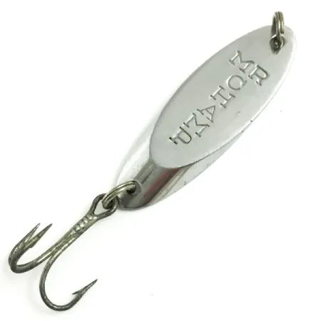 Aiškiai įspaustas poliruotame nikelio paviršiuje, atpažįstamas šios blizgės pavadinimas pabrėžia jos kilmę iš šimtmetį trukusios Amerikos kompanijos Weber istorijos. 4 cm (1 1/2") ilgio ir 7 g (1/4 oz) svorio modelis pasižymi grakščiu, pailgu profiliu, tinkamu tolimiems metimams ar giliam velkiavimui. Šis konkretus modelis, žymimas prekės kodu 6067, turi aukštos kokybės padengimą, kuris tapo standartu žvejams visoje Šiaurės Amerikoje prieš prekės ženklą įtraukiant į Luhr Jensen katalogą. Konstrukciją sudaro patvarus trišakis kablys ir žiedeliai, kurie yra puikios būklės, be didelio nusidėvėjimo požymių. Įvertinta 5/5, masalo atspindinti apdaila ir ryški tipografija išlieka nepriekaištingos, demonstruodamos originalų JAV gamybos meistriškumą. Metalinis korpusas yra subalansuotas greitai skęsti vandens sluoksniuose, išlaikant stabilią padėtį tolygaus traukimo metu.