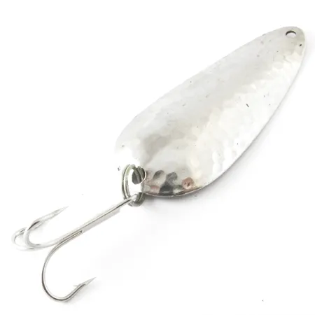 Kalto nikelio žvyneliai gaudo ir atspindi šviesą šiame klasikiniame Mineapolyje pagamintame 7,5 cm (3") ilgio blisgės kūne. 14 g (1/2 oz) svorio Nebco FlashBait 166 yra solidus masalas, tinkantis spiningavimui arba velkiavimui. Įgaubtoje pusėje aiškiai matomas spaudas 'NEBCO FLASH BAIT 166 MPLS. MINN', liudijantis jo kilmę iš Minesotos žvejybos įrankių gamybos istorijos. Šis egzempliorius, kurio produkto kodas 4156, yra 4/5 būklės, švariu paviršiumi, turinčiu tik nedidelių naudojimo žymių. Galutinė furnitūra susideda iš vieno žiedelio, jungiančio didelį trišakį kabliuką uodegoje. Viršutinėje siaurėjančio profilio dalyje išgręžta tiksli skylė saugiam tvirtinimui prie segtuko ar pavadėlio.