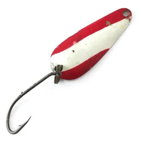 Sverdama vos 1/16 oz (1,9 g), ši vintažinė blizgė pabrėžia ankstyvąjį amerikiečių dėmesį ultralight finesse žvejybai. Nebco FlashBait 366, atpažįstama pagal produkto kodą 5511, yra 1 1/4" (3,3 cm) ilgio ir pasižymi didelio kontrasto raudonai ir baltai dryžuotu dažymu priekinėje pusėje. Kitoje pusėje auksuotas paviršius yra įspaustas prekės ženklo pavadinimu ir modelio numeriu, nurodančiu JAV kilmę. Šis egzempliorius yra 4/5 būklės, išlaikęs originalų bronzuotą vienšakį kablys ir turintis tik nežymių paviršiaus žymių iš savo istorijos žūklės dėžutėje. Lašo forma ir poliruota auksinė nugarėlė buvo sukurti gaudyti ešerines žuvis ir upėtakius skaidriame vandenyje. Viršutinėje metalinio korpuso dalyje yra maža, švari tvirtinimo skylutė tiesioginiam rišimui arba mažam suktukui.