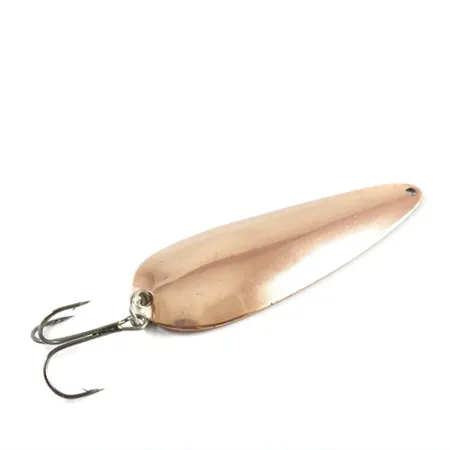 Varis yra šios klasikinės blizgės pagrindas, suteikiantis šiltą metalinį švytėjimą, kuris laikui bėgant gražiai pasikeitė. Įvertintas 4/5, paviršius išlieka ryškus, ant metalo matomi tik nedideli žvejybos istorijos ženklai. Įgaubtoje vidinėje pusėje aiškiai išmuštas „NEBCO“ FLASH-BAIT 66 identifikavimo ženklas, nurodantis jo kilmę iš MPLS., MINN. JAV. Šis egzempliorius, pažymėtas prekės kodu 2823, yra 3 1/2" (9 cm) ilgio ir 3/4oz (21 g) svorio. Komplektaciją sudaro tvirtas trišakis kabliukas, pritvirtintas metaliniu žiedeliu plačiajame gale, o siaurajame gale esanti išmušta skylutė skirta segtukui ar pavadėliui tvirtinti. Jo pailgas lašo formos profilis skirtas tradiciniam spiningavimui ar velčiavimui gėluose vandenyse.