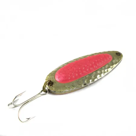 Ši 1/2 oz (14 g) žalvarinė blizgė pasižymi klasikiniais dizaino elementais, dėl kurių „National Expert Bait Company“ (geriau žinoma kaip „Nebco“) tapo pagrindiniu šiaurės žvejų įrankiu. 2 1/4" (5,5 cm) ilgio masalas turi išskirtinį muštą paviršių priekinėje dalyje, supančią tekstūruotą rožinį įdėklą, imituojantį lašišos ikrų kekę. Apvertę masalą, ant lygios nugarėlės aiškiai pamatysite spaudą „Nebco PIXEE PAT. PEND.“ bei gaminio kodą 0525. Įrangą sudaro tvirtas trišakis kabliukas, pritvirtintas per stiprų žiedelį, rodantį konstrukcijos kokybę, skirtą tolimiems metimams upių srovėse ar pakrantės vėjuose. Įvertinta 5/5 balais, žalvario paviršiai išlieka ryškūs, o ikoniškas rožinis įdėklas tvirtai laikosi be jokių nusidėvėjimo požymių. Sukurta specialiai tam, kad pasiektų gilesnes vietas, kur laikosi trofėjinės lašišos ir plienagalvės upėtakiai – sunki žalvarinė konstrukcija suteikia tankį, reikalingą tolimiems metimams. Nors egzistuoja daug modernių versijų su „Blue Fox“ etikete, šie ankstyvieji „Nebco“ ženklinti egzemplioriai yra tikri 1960-ųjų originalai. Rožinis įdėklas sukuria ryškų vizualinį kontrastą su auksinio atspalvio žalvariu – šis spalvų derinys seniai vertinamas žvejojant prasto apšvietimo sąlygomis ar drumstame vandenyje.
