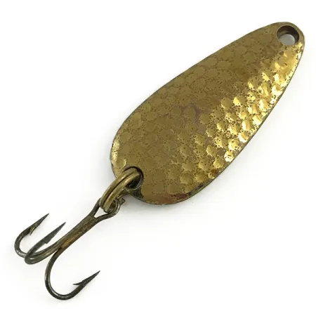 Kalto bronzos tekstūros puošia šios 4 cm (1 1/2") metalinės vartiklės paviršių, atspindėdamos klasikinį požiūrį į šviesos atspindžius, kurį vertina JAV žvejai. 7 g (1/4 oz) svorio masalas pažymėtas produkto kodu 5813 ir reprezentuoja Nichols, NY gamyklos meistriškumą. Kitoje pusėje esantis žalvarinis paviršius pažymėtas „NEBCO TOR-P-DO 1“ antspaudu, leidžiančiu lengvai nustatyti kilmę. Įrangą sudaro tvirtas trišakis kablys, pritvirtintas žalvariniu žiedeliu; abu elementai pasižymi natūraliu, masalo korpusui būdingu senėjimu. Masalo būklė įvertinta 4/5 balais: metaliniai paviršiai yra šiek tiek patamsėję, matomos nedidelės saugojimo žymės, tačiau kaltos įdubos išlieka ryškios ir aiškios. Lašo formos profilis ir šiek tiek išgaubtas dizainas yra specialiai sukurti spiningavimui arba lengvam velkiavimui.