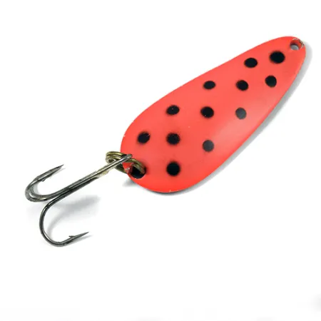 Ant nikeliuotos nugarėlės aiškiai įspaustas „NEBCO TOR-P-DO 4“ žymėjimas, nurodantis, kad tai klasikinė amerikietiška vartiklė iš Holdingfordo, Minesotos. Sverdama 45 g (1 2/3 oz), ši vartiklė sukurta pasiekti didelį gylį arba pramušti vėją tolimais metimais. Priekinė pusė yra ryškiai raudonos spalvos su juodais taškais – tai gerai matomas derinys drumstame vandenyje. 7,5 cm ilgio masalo tvirta konstrukcija atspindi senajai Nebco įrangai būdingą utilitarų dizainą. Šis egzempliorius (kodas 2083) yra 4/5 būklės ir turi tik nedidelių senėjimo požymių. Furnitūra išlieka funkcionali: tvirtas trišakis kablys pritvirtintas patikimu žiedeliu prie lašo formos korpuso.