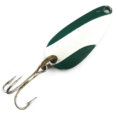 Įstriži žali ir balti dryžiai puošia šios Mineapolyje pagamintos 4 cm (1 1/2") ilgio blizgės viršutinę pusę. Ant nikeluotos nugarėlės išspaustas „NEBCO“ TOR-P-DO-I ženklas, pabrėžiantis jos kilmę iš MPLS, MINN, JAV. Šis 9 g (1/3 oz) svorio metalinis korpusas kataloguojamas kodu 5292. Dažyta apdaila turi sąžiningo nusidėvėjimo žymių, atitinkančių 4/5 būklės įvertinimą, o po ja esantis nikelis išlieka ryškus. Išlikusi originali furnitūra – žiedelis ir tvirtas trišakis kablys uodegoje. Šios detalės atspindi utilitaristinį dizainą, būdingą vidurio amžiaus JAV žūklės įrankiams.