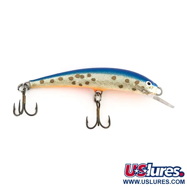 Rankų darbo medinis vobleris iš Suomijos, priklausantis legendinei Nils Master Invincible Floating serijai (produkto kodas 9226). Light Blue Trout spalvinimas pasižymi ryškiai mėlyna nugara, pereinančia į blizgantį sidabrinį-auksinį šoną su ryškiomis rudomis dėmėmis ir šviesiai oranžiniu pilvu. 8 g (1/4 oz) svorio ir 8 cm (3 1/4") ilgio masalas išsiskiria plačiais šonais ir šiek tiek suplokštėjusiu profiliu žiūrint iš viršaus. Finlandia Uistin meistrai sukūrė šį tylų voblerį tiek spiningavimui, tiek velkiavimui, jis pasiekia iki 2 m (6,5 ft) gylį. Masalas apginkluotas dviem aštriais trišakiais kabliukais su tvirtais žiedeliais. Šis konkretus egzempliorius yra puikios 5/5 būklės, demonstruojantis kruopštų suomių meistrų darbą. Skaidrus liežuvėlis tvirtai įklijuotas, pritaikytas gaudyti upėtakius, lašišas ir lydekas.