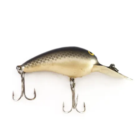 Auksinio atspalvio žvynų raštas puošia šio masalo šonus, pereidamas į tamsiai pilkai juodą nugarėlę, imituojančią giliavandenę žuvelę. Sukurtas pasiekti 1,8–2,4 m (6–8 pėdų) gylį, Norman Deep Baby N pasižymi ryškiu juodu liežuvėliu, ant kurio nurodytas prekės kodas 9988. Šis 7 g (1/4 oz) „crankbait“ tipo vobleris yra 5,5 cm (2 1/4") ilgio ir turi vidinę barškėjimo sistemą, tinkančią tiek spiningavimui, tiek velkiavimui. Geltonai nudažytos akys sukuria ryškų kontrastą su tamsesne galva, o du trišakiai kabliukai išlieka ryškūs ir nepažeisti. Kilęs iš amerikietiškos žvejybos įrankių gamybos tradicijos, šio konkretaus egzemplioriaus apdaila yra puikiai išsilaikiusi ir nusipelno 5/5 įvertinimo. Gamyklinis žiedelis pritvirtintas tiesiai prie liežuvėlio kilpelės, todėl masalas paruoštas naudojimui arba eksponavimui vintažinėje kolekcijoje.