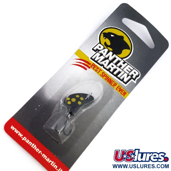 Juodas lapelis, papuoštas penkiais ryškiais geltonais taškais, apibūdina klasikinę šios Italijoje pagamintos Panther Martin 2 sukriukės išvaizdą. Sverdama 3/32oz (2,5 g) ir būdama 1 3/4" (4,5 cm) ilgio, ši masalų rūšis naudoja unikalią prekės ženklo konstrukciją su ašimi per lapelį, kur lapelis sukasi tiesiai ant vielos be lankelio. Šis egzempliorius, kurio produkto kodas 10242, o modelis TMBFL GR 2, yra nenaudotos būklės originalioje mažmeninėje pakuotėje. Lašo formos korpusas padengtas metaliniu sidabru, sukuriančiu tvirtą kontrastą Juodai / Geltonai (BKY) lapelio spalvinei gamai. Iš pradžių Europoje sukurtiems masalams būdinga paprasta mechanika, ypač ant ašies sumontuoto lapelio konstrukcija, užtikrinanti momentinį sukimąsi traukiant per vandenį. Ant pakuotės puikuojasi firminis juodosios panteros logotipas ir „Best Spinner Ever“ šūkis, padėjęs įtvirtinti šio masalo statusą tarp kolekcininkų ir žvejų.