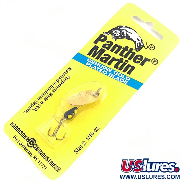 Tikras auksavimas ant išgaubto / įgaubto lapelio išskiria šį Panther Martin 2 suktuką – klasikinį modelį, sukurtą aukšto dažnio vibracijai generuoti. 2,5 g (3/32 oz) svorio Panther Martin masalas (produkto kodas 4582) turi lašo formos korpusą, dažytą juodai su ryškiai geltonais taškais. Lapelis sumontuotas tiesiai ant ašies – tai firminė konstrukcija, užtikrinanti momentinį sukimąsi vos pasiekus vandenį. Bendras masalo ilgis yra 5 cm (2"), jis pateikiamas originalioje geltonoje mažmeninės prekybos pakuotėje. Harrison Hoge Industries nurodomas kaip platintojas, komponentai pagaminti JAV, o surinkti Dominikos Respublikoje. Kitoje pakuotės pusėje aprašytos specifinės garsinės lapelio savybės. Vienas trišakis kablys yra pritvirtintas prie pasunkinto korpuso pagrindo.