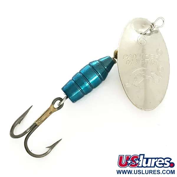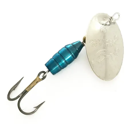 Gili metalinio mėlynumo lašo formos korpuso apdaila išskiria šią Panther Martin 6 iš įprastesnių modelių. Sverianti 6 g (3/16 oz), ši klasikinė sukrė pasižymi firminiu dizainu, kai lapelis montuojamas tiesiai ant ašies. Sidabriniame lapelyje įspaustas Panther Martin logotipas, 6 dydžio žyma ir itališka kilmė. Masalo ilgis yra 5 cm (2"), jis atspindi tiksliąją inžineriją, dėl kurios šios sukrės tapo nepakeičiamos upėtakių žvejyboje. Kalbant apie furnitūrą, trišakis kablys išlieka aštrus ir švarus, o tai atitinka 5/5 būklės vertinimą. Unikalus sidabrinio lapelio ir melsvai žalsvo korpuso derinys (produkto kodas 6457) užtikrina didelio kontrasto profilį įvairiomis apšvietimo sąlygomis. Ši specifinė konstrukcija išvengia lankelio (clevis) naudojimo, montuojant įgaubtą lapelį tiesiai ant vielinės ašies, kad būtų užtikrintas kompaktiškas rotacijos profilis.
