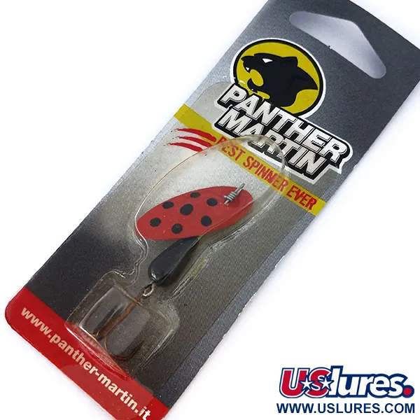 Ši Italijoje pagaminta 1/3 oz (9 g) svorio sukrė pasižymi išskirtiniu lašo formos korpusu su matine juoda apdaila. Panther Martin 9 konstrukcija sukurta naudojant išgaubtą/įgaubtą lapelį, kuris montuojamas tiesiai ant pagrindinės ašies – tai firminis techninis sprendimas, dešimtmečius apibrėžiantis šio prekės ženklo identitetą. Šis konkretus pavyzdys, pažymėtas produkto kodu 10326, turi ryškiai raudoną lapelį, dekoruotą ryškiais juodais taškais. Bendras masalo ilgis yra 2 1/4" (6 cm), o jo sunkintas korpusas sukonstruotas stabilumui metimo metu, kas leidžia pasiekti didesnį atstumą esant įvairiai srovės tėkmei. Lapelio montavimo ant ašies sistema derinama su aštriu trišakiu kabliuku, o visas gaminys pateikiamas originalioje vintažinio stiliaus lizdinėje pakuotėje. Masalas yra nenaudotas ir gamykliškai užsandarintas, kartu su originalia informacine kortele, pabrėžiančia gamintojo itališką kilmę. Spalvos žymėjimas „RB“ atitinka šį kontrastingą raudonos ir juodos spalvų raštą.