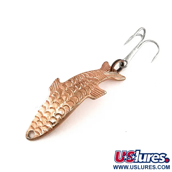 Ši Acme blizgė su detaliu reljefiniu žvynų raštu, suteikiančiu tikrovišką trimatę išvaizdą, yra tikra amerikietiškos žūklės istorijos klasika. Šis modelis, žinomas kaip Phoebe (produkto kodas 7877), pasižymi elegantiška vario apdaila 4 cm (1 1/2") ilgio korpuse. 4 g (1/8 oz) svorio išlenktas masalas turi ryškų nugaros peleką ir smailėjančią uodegą, todėl juo galima efektyviai žvejoti tiek negiliuose, tiek gilesniuose vandens sluoksniuose. Lygioje nugarinėje pusėje aiškiai išspaustas pavadinimas „PHOEBE“, o metalo būklė išlieka 5/5. Masalas apginkluotas sidabrinės spalvos trišakiu kabliu su žiedeliu gale, o galvoje esanti tiksliai išgręžta anga paruošta valo tvirtinimui.