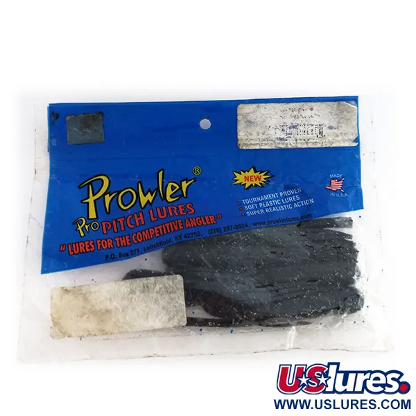 Gili, blizgučiais praturtinta apdaila išskiria šį 4 colių (10 cm) minkštą masalą, pasižymintį klasikiniu alyvuogių žalios spalvos stiliumi, itin vertinamu dėl natūralios pateikties. JAV pagamintas Prowler Pro Pitch modelis (produkto kodas: 9825) pasižymi tvirta silikono konstrukcija, pritaikyta džigavimui ir „pitching“ technikoms. Masalo kūnas pasižymi vientisa cilindrine galva ir daugiasluoksniu sijonėlio formos uodegos galu, suprojektuotu išlaikyti stabilią formą montuojant ant galvutės arba Texas tipo kabliuko. Šis pavyzdys yra 5 vienetų rinkinio dalis ir pateikiamas nenaudotas, išlaikant originalų plastiko lankstumą bei tekstūrą. Maži sidabriniai žvyneliai pasiskirstę tamsiai žalioje medžiagoje, kad po vandeniu atspindėtų šviesą. Šie masalai reprezentuoja profesionalios klasės minkštą plastiką, kurį naudoja sportinės žūklės meistrai, žvejodami tankioje augmenijoje ar kliuviniuose. Medžiagos tankis visoje 5 vienetų pakuotėje yra vienodas, užtikrinantis patikimą darbą metant ir traukiant masalą.