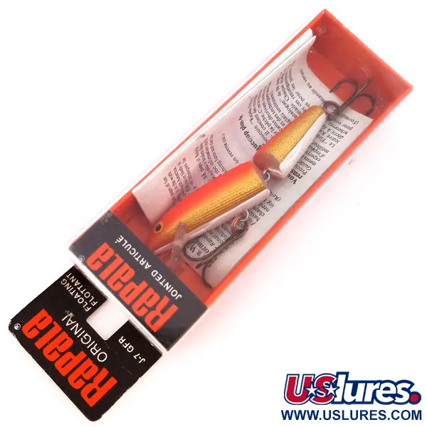 Auksiniai-oranžiniai GFR (Gold Fluorescent Red) apdailos tonai vyrauja šio 7 cm (2 3/4") balzos medienos voblerio profilyje. Suomijoje rankiniu būdu suderintas ir išbandytas baseine, šis Rapala Jointed J-7 sveria 4 g (1/8 oz) ir yra skirtas dirbti 1,2–1,8 m gylyje. Šis konkretus egzempliorius yra nenaudotas, išsaugotas originalioje oranžinėje dėžutėje su gamykline instrukcija. Dviejų dalių korpusas sukurtas spiningavimui arba velkiavimui, išlaikant stabilų žaidimą net lėtai traukiant „stop and go“ metodu. Suomijos meistriškumas akivaizdus tiksliame jungiamųjų segmentų surinkime – tai savybė, skirta išprovokuoti upėtakių, ešerių ir lydekų atakas. Etiketė patvirtina, kad tai J-7 GFR modelis, tapęs klasika žvejams, vertinantiems tikros balzos medienos plūdrumą ir reakciją.