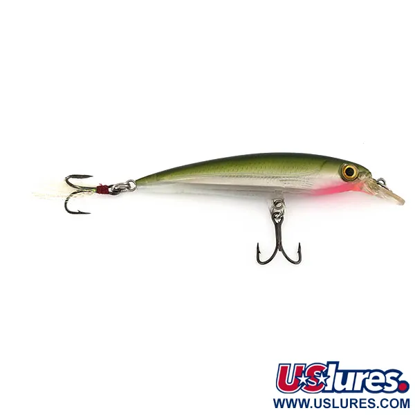 Alyvuogių žalios spalvos gradientai apibūdina viršutinį šio Estijoje pagaminto 7g (1/4oz) svorio X-RAP serijos voblerio profilį. 8 cm (3 1/4") ilgio kūnas pasižymi tekstūruotais sidabriniais šonais, kurie ties galva pereina į švelniai rausvai raudoną pagurklį. Šis modelis, pažymėtas prekės kodu 9633, turi skaidrų liežuvėlį, skirtą 0,6–1,2 m (2–4 ft) gyliui. Išskirtinė savybė – SureSet galinis kablys, papuoštas baltomis plunksnomis ir atspindinčiu blizgučiu (tinsel), kad būtų sukurtas taikinys kibimui. Įvertintas 5/5, masalas atrodo nepriekaištingai: 3D holografinės akys sveikos, o ant kabliukų ar žiedelių nėra jokių nusidėvėjimo žymių. Viduje sumontuotas tolimo metimo mechanizmas ir holografinė folija, užtikrinanti gilų blyksėjimą.