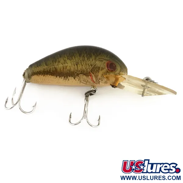 Sveriantis 1/3 oz (10 g), kompaktiškas 2" (5 cm) šio Rebel Deep Humpy korpusas yra skirtas pasiekti gylį, kurio paprasti vobleriai tiesiog nepasiekia. Shrimp spalvinė gama šiame egzemplioriuje yra ypač gerai atlikta: tamsiai alyvuogių aukso spalvos žvynų raštas palei nugarą pereina į lygų, kreminės spalvos pilvelį. Padidintas skaidrus liežuvėlis yra pagrindinė šio 7911 modelio konstrukcinė savybė, kuri kartu su vidine barškučio sistema sukuria garsinį poveikį vandenyje. Šis konkretus masalas pagamintas JAV ir yra išlaikęs 5/5 būklę, o dažai aplink raudonai apvestas akis ir žiaunų dangtelius išlieka ryškūs. Tai plaukiantis masalas, turintis du originalius sidabruotus trišakius kabliukus, kurie neturi jokių dėvėjimosi žymių.