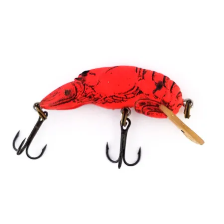 Ugnies raudonumo tonai apibūdina matinį šio specializuoto UV spinduliams reaktyvaus masalo paviršių, kuris sukurtas fluorescuoti gilesniame ar drumstame vandenyje. Šis Rebel Wee-Crawfish, žymimas produkto kodu 11041, pasižymi kompaktišku 1 1/2 colio (4 cm) profiliu ir sveria 3/32 oz (2,5 g). Plaukiantis korpusas sukurtas pasiekti 0,5–1,5 m gylį traukiant, efektyviai padengdamas vidutinio gylio zonas. Jis turi detalų juodą spaudą, imituojantį vėžio anatomiją, skaidrų liežuvėlį ir juodus trišakius kabliukus. Masalas yra 5/5 būklės, ant jo ryškaus fluorescencinio paviršiaus nėra jokių naudojimo ar nusidėvėjimo žymių. Šis modelis pagamintas JAV ir yra skirtas spiningavimui arba velkiavimui žvejojant tokias žuvis kaip ešeriai ir lydekos.