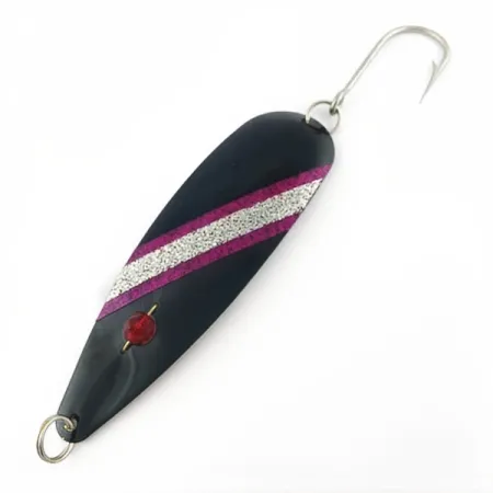 Ši 13 cm ilgio vartiklė pasižymi sodria juoda spalva, kurią išryškina ryškios įstrižos rožinių ir sidabrinių blizgučių juostos. Ši 18 g (2/3 oz) Red Eye Evil Eye yra klasikinė Amerikos žūklės įrankių istorijos dalis, pagaminta „Red Eye Lures“ JAV. Pagrindinis šio dizaino akcentas – briaunotas raudonas stiklo karoliukas, pritvirtintas prie uodegos, nuo kurio ir kilo masalo pavadinimas. Kolekcionieriai įvertins 5/5 būklę, itin švarų paviršių bei originalią furnitūrą, įskaitant tvirtą vienšakį kabliuką ir priekinį žiedelį. Masalas, žymimas prekės kodu 23980, pasižymi lieknu profiliu, skirtu spiningavimui ar velčiavimui. Tamsaus korpuso ir kontrastingų blizgių juostų derinys sukuria specifinį vizualinį profilį, dažnai naudojamą esant prastam apšvietimui arba giliame vandenyje. Masyvi metalinė konstrukcija ir patikimai viela pritvirtintas karoliukas yra būdingi patvariems gamybos standartams, kuriais garsėjo „Red Eye Lures“ savo gamybos metais.
