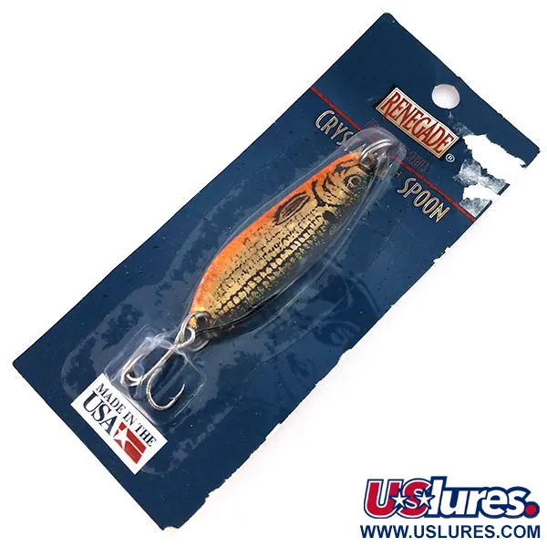 Kaltas korio raštas ant korpuso yra pagrindinė šios Renegade Crystalina Spoon blisgės savybė, sukurta sugauti ir išsklaidyti šviesą vandenyje. Ryškus Kaltas auksas / Oranžinė spalvinimas suteikia masalui itin kontrastingą profilį, kuris puikiai matomas esant bet kokiam vandens skaidrumui. Šis JAV pagamintas Honeycomb Series modelis yra 5,5 cm (2 1/4") ilgio ir sveria 11 g (2/5 oz), todėl tai universalus pasirinkimas žvejams, gaudantiems upėtakius ir kitas plėšrias žuvis. Masalas, kurio prekės kodas 10239, yra originalioje vintažinėje pakuotėje. Būklė vertinama 6 balais, nes blisgė yra nenaudota ir išlaikiusi gamyklinę išvaizdą. Originali furnitūra, įskaitant pilvo srityje sumontuotą trišakį kabliuką ir žiedelį valui tvirtinti, yra nepažeista ir atspindi aukštą JAV gamybos kokybę.