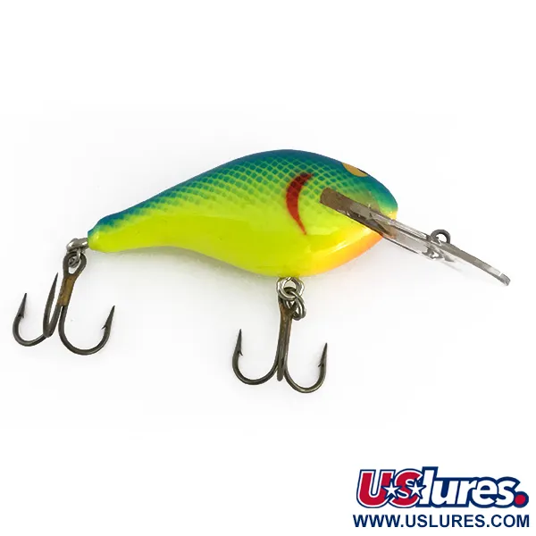 UV spinduliams jautrūs chartreuse pigmentai išskiria rankomis apdirbtą šio 6 cm modelio išorę, atspindinčią amatininkų požiūrį, būdingą amerikietiškai gamybai. Išskobtas iš Jelutong medienos, Renegade Little Diver (Kodas 8051) sveria 11 g, todėl yra puikiai subalansuotas tikslingiems metimams gaudant tokias žuvis kaip šapalas, salatis ar ešerys. Vizualinis dizainas pasižymi žvynų rašto perėjimu iš žalios į geltoną šonuose, kurį pabrėžia ryški raudona žiaunų žymė ir didelės geltonos akys, sukuriančios didelio kontrasto akcentus. Skaidrus, platus liežuvėlis leidžia vobleriui pasiekti iki 2 m gylį traukimo metu. Apdaila yra ypatingai švari, išlaikiusi originalų dažų blizgesį ir detalių vientisumą, todėl būklė vertinama 5/5. Abu trišakiai kabliukai saugiai pritvirtinti per žiedelius, užtikrinant masalo konstrukcinį patikimumą.