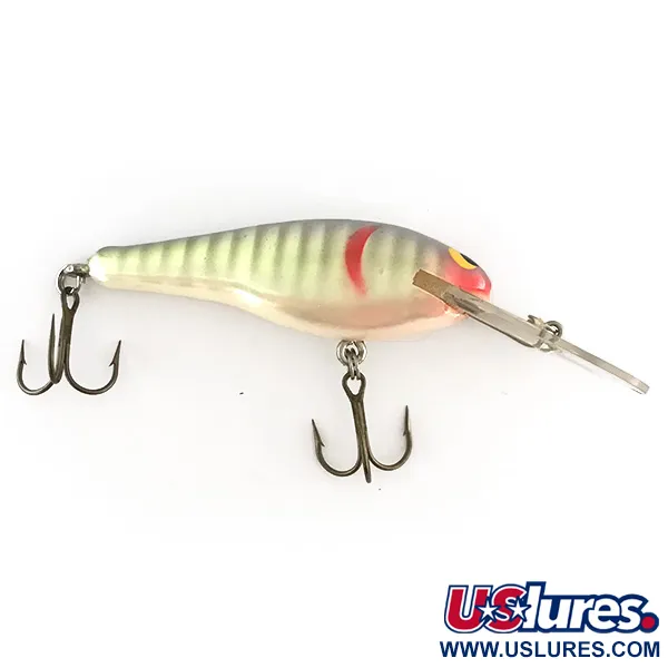 Iš Jelutong medienos išskobtas šio Renegade Little Diver korpusas pasižymi perlų apdaila su UV spinduliams reaktyviomis savybėmis. Šis 9 g (1/3 oz) svorio ir 7 cm (2 3/4") ilgio vobleris yra skirtas žvejoti tokias rūšis kaip šapalai ar ešeriai iki 2 m (6,5 ft) gylyje. Vizualinį raštą sudaro tamsūs vertikalūs dryžiai ant perlamutrinių šonų, kuriuos pabrėžia ryški raudona žiaunų žymė už klasikinės geltonai juodos akies. Kiekvienas 8475 serijos egzempliorius apdirbtas rankomis, užtikrinant aukštą medinio karkaso apdailos lygį. Šis konkretus masalas yra 5/5 būklės, išlaikęs originalų blizgesį ir aštrius, nepasenusius trišakius kabliukus. Skaidrus liežuvėlis tvirtai integruotas į galvą, sureguliuotas pasiekti tikslinį gylį, kartu išlaikant natūralų medienos plūdrumą.
