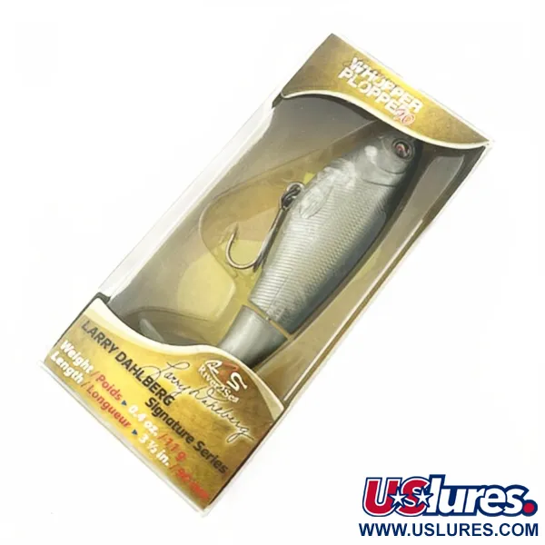 Phantom Shad, žymima 17 spalva, šiame Larry Dahlberg vardinės serijos modelyje sukuria permatomą masalinės žuvies profilį. Šis 11 g (2/5 oz) svorio masalas sukurtas kaip plaukiantis paviršinis įrankis, kuris išlieka stabilus traukiant įvairiu greičiu. Šis konkretus 9 cm (3 1/2") egzempliorius turi 23930 produkto kodą ir yra originalioje pakuotėje, nenaudotas. Vardinės serijos ženklinimas ant auksinio atspalvio dėžutės pabrėžia bendradarbiavimą su legendiniu žveju Larry Dahlberg, kurio dizainas pasižymi besisukančia minkšto plastiko uodega, skirta kelti triukšmą vandens paviršiuje. Konstrukciją sudaro aštrūs trišakiai kabliukai, pritvirtinti tvirtais žiedeliais. Skaidri pakuotė išsaugo apdailos vientisumą, įskaitant išraiškingas išlietas žvynų bei žiaunų detales.