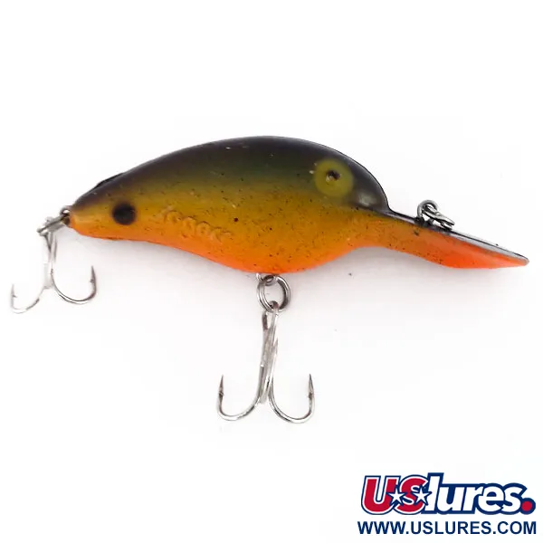 Šis kompaktiškas, 5,08 cm (2 colių) ilgio vobleris pasižymi išraiškingu gradientiniu dažymu, kuris pereina nuo tamsiai alyvinės nugaros per garstyčių geltoną iki ryškiai oranžinio pilvo. Šis 9,4 g (1/3 uncijos) svorio modelis, žymimas kodu 9581, yra klasikinis JAV gaminamos Rogers įrangos pavyzdys – kompanijos, kuri žūklės pramonėje žinoma nuo 1959 metų. Pavadinimas „Rogers“ subtiliai įspaustas tiesiai į korpuso šoną – tai ankstyvojo gamintojo stiliaus ženklas, būdingas ir garsioms Big Jim bei Hawg Hunter serijoms. Padidintas liežuvėlis yra integruotas į korpuso konstrukciją, kad padėtų pasiekti gilesnius vandens sluoksnius išlaikant stabilumą tolygaus traukimo metu. Įvertintas 5/5 būkle, masalas atrodo išskirtinai gerai išsilaikęs: originali furnitūra ir sidabriniai trišakiai kabliukai neturi jokių senėjimo požymių. Giliavandenis liežuvėlis išlieka skaidrus ir tvirtas, puikiai subalansuotas žvejybai prie gilių struktūrų ar šlaitų.