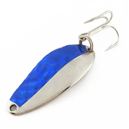 Kalto paviršiaus mėlyna tekstūra sukuria ryškų vizualinį kontrastą su poliruota nikelio spalvos puse šioje 4 cm ilgio vartiklėje. Ši Seneca Little Cleo, atpažįstama pagal produkto kodą 24402, yra klasikinis „Seneca Tackle Company“ amerikietiško masalų meistriškumo pavyzdys. 7 g svorio metalinis korpusas nugarinėje dalyje pažymėtas įspaudais „LITTLE CLEO WIGL-LURE“ ir „A SENECA LURE“, patvirtinančiais jos vintažinę kilmę iš JAV. Furnitūrą sudaro tvirtas žiedelis ir aštrus trišakis kablys – visi elementai yra puikios būklės. Atspindintys paviršiai išlikę stebėtinai gerai, todėl šis retas egzempliorius įvertintas 5/5 balų.