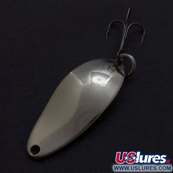 Galinėje pusėje aiškiai išmušta „Little Cleo Wigl-Lure A Seneca Lure“ – ši nikelio blizgė pasižymi klasikiniu 1 1/2 colio (4 cm) korpusu. Gilus profilis sukurtas efektyviam naudojimui spiningaujant ar velkiaujant įvairiuose gyliuose. 1/4 uncijos (7 g) svorio metalinis paviršius išlaiko ryškų, veidrodinį blizgesį, atitinkantį 5/5 būklę. „Seneca“ gamino šias blizges naudodama tikslų kalibravimą, kad išlaikytų svorio pasiskirstymą per visą išlenktą metalą. Šis konkretus gaminys, prekės kodas 24460, pasižymi švaria graviruote ir tradiciniu dengimu, būdingu vidurio amžiaus Amerikos žvejybos įrankiams.
