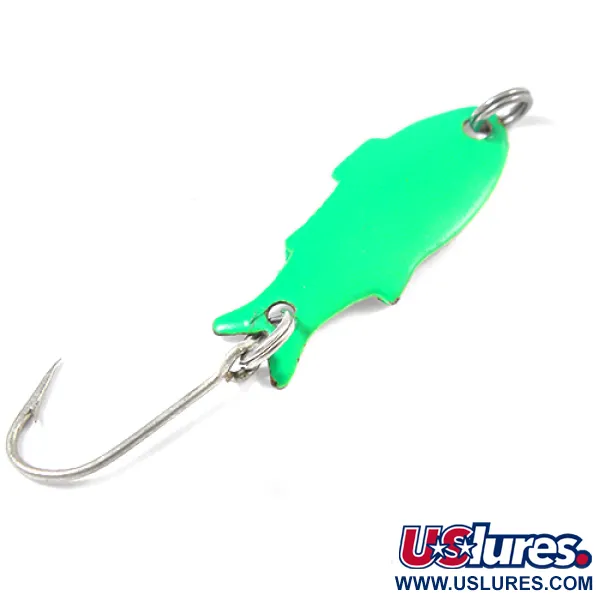 Balta ir žalia spalva sukuria didelio kontrasto apdailą ant šio Shoff's Triple Teazer korpuso, kuris mūsų kolekcijoje pažymėtas kodu 2140. Tik 1/32 oz (1,1 g) sveriantis mažas profilis nugarėlėje aiškiai pažymėtas įspaudu „SHOFF'S TRIPLE TEAZER KENT WASH“, nurodančiu jo kilmę – JAV pagamintą vartiklę. 1 1/4" (3 cm) ilgio masalas išlaiko ryškiai žalią dangą viršuje, o apačioje yra blizgi metalinė apdaila. Dabartinės 5/5 būklės dažytas paviršius yra lygus, o įspaustas užrašas išlieka ryškus ir įskaitomas. Masalas komplektuojamas su vienašakiu kabliu ir žiedeliais abiejuose galuose.