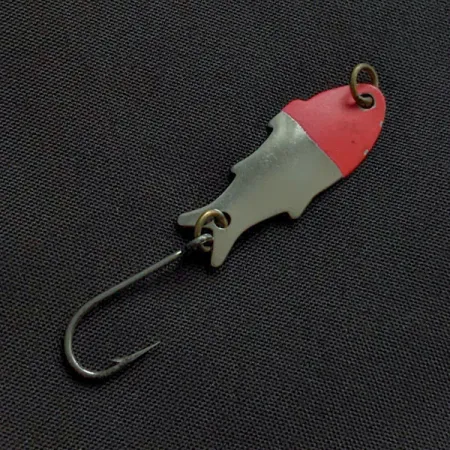 Klasikinę šio 3 cm ilgio modelio apdailą pabrėžia nikelis ir raudoni dažai, atspindintys subtilų Shoff's Triple Teazer dizainą. Tik 1,1 g sverianti štampuoto metalo korpuso forma pasižymi aiškiu žuvies profiliu, pabrėžiančiu JAV gamybos tradicijas. Įgaubtoje galinėje pusėje aiškiai matomas gamintojo ženklas, nurodantis masalo gaminio kodą 22327. Masalas apginkluotas vienu aštriu kabliuku, pritvirtintu žalvariniu žiedeliu, ir yra skirtas lengvam spiningavimui gaudant upėtakius ar ešerines žuvis. Būklė vertinama 5/5: paviršius puikiai išlaikytas, poliruotas nikelis ir ryškiai raudona galvutės dalis išliko nepažeisti. Priekinėje dalyje esantis antrasis žalvarinis žiedelis skirtas valui tvirtinti.