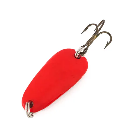 Ši kompaktiška 1 1/4" (3 cm) blizgė iš Sølvkroken Special Classic UV serijos pasižymi ryškia fluorescuojančia apdaila, kuri išsiskiria net esant prastam apšvietimui. 7 g svorio egzempliorius, pažymėtas prekės kodu 7825, yra sukurtas metimo tikslumui ir matomumui giliame vandenyje. Matinė raudona išorė ultravioletinėje šviesoje pasikeičia, kaip parodyta antroje nuotraukoje, suteikdama ryškų švytėjimą, skirtą naudoti tamsesnėje aplinkoje arba gylyje. Per tvirtus žiedelius pritvirtintas bronzuotas trišakis kablys yra puikiai išsilaikęs ir atspindi aukštus prekės ženklo gamybos standartus. Masalo paviršius yra puikios 5/5 būklės, išlaikęs lygią ir ryškią dangą visame korpuse.
