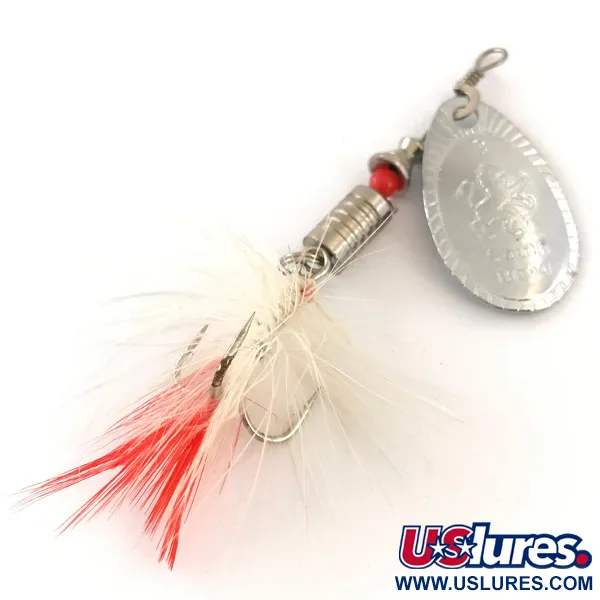 1/4oz (7g) svoris suteikia šiai JAV pagamintai South Bend 3 sukriukei stabilumo, todėl ji yra patikimas pasirinkimas tolimiems metimams. Blizgi nikelio apdaila dengia ovalo formos lapelį, ant kurio aiškiai išspaustas gamintojo ženklas. Virš sunkaus, rievėto metalinio korpuso mažas raudonas karoliukas tarnauja kaip tarpiklis ir vizualinis kontrasto taškas. Šio 7 cm (2 3/4") masalo gale sumontuotas trišakis kabliukas, meistriškai aprištas natūraliomis baltomis plunksnomis su raudonu akcentu prie koto. Turėdama produkto kodą 4184, ši sukriukė yra 5/5 būklės, be jokių ankstesnio naudojimo žymių. Nikelio danga tiek ant lapelio, tiek ant korpuso dalių išlaiko originalų spindesį, būdingą South Bend vidurio amžiaus gamybos standartams.