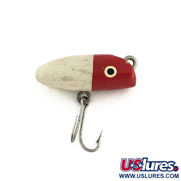 Šis vos 3 cm (1 1/4 colio) ilgio vintažinis modelis su klasikine raudona galva ir baltu korpusu iškart patraukia kiekvieno muselinės žūklės entuziasto akį. Šis South Bend Fly-Oreno, kurio gaminio kodas 9227, yra sumažinta gerai žinomo Oreno šeimos dizaino versija, specialiai pasverta 1,6 g (1/16 oz) subtiliam pateikimui. Medinė konstrukcija pasižymi giliai įgaubta priekine dalimi, skirta judinti vandens paviršių dirbant su museliniu valu. Įrangą sudaro tvirtas dvigubas kablys, pritvirtintas pilvo sraigtine kilpa, užtikrinančia pusiausvyrą. Atkreipkite dėmesį į dažytas akis – ryškų juodą vyzdį auksiniame žiede, būdingą South Bend gamybos eros meistriškumui. Atsižvelgiant į amžių, apdaila išliko stebėtinai ryški, o už puikiai išlaikytą blizgesį ir švarius paviršius šis masalas įvertintas 5/5 balais. Valo tvirtinimo vieta yra viršugalvyje, kas būdinga Oreno šeimos paviršiniams masalams.