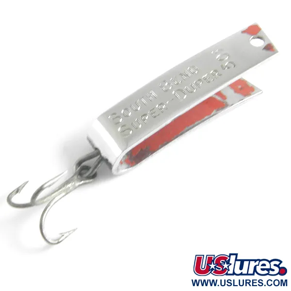 Ši lengva, 2,3 g (3/32 oz) sverianti klasikinė spiningavimo blizgė turi nikeliuotą korpusą su ikonišku U formos išlinkimu, kuris dešimtmečius traukia žvejų akį. 3 cm (1 1/4 colio) ilgio metalinis paviršius vienoje pusėje yra paženklintas „SOUTH BEND SUPER-DUPER 501“ įspaudu, o kitoje – originaliu patento numeriu. Vidinėje išlinkio dalyje ir galuose matomi išlikę raudoni dažų akcentai, sukuriantys kontrastą poliruotam nikeliui. Šis konkretus egzempliorius, atpažįstamas pagal prekės kodą 4297, reprezentuoja inovatyvius gaminius, kuriais „South Bend“ išgarsėjo XX a. viduryje. Trišakis kablys išlieka aštrus ir yra patikimai pritvirtintas prie galinės kilpos. Masalas vertinamas 4 balais iš 5, jis išlaikęs švarų metalinį spindesį ir aiškiai matomus įspaudus. Viena išgręžta anga ilgesnės dalies gale skirta valui ar pavadėliui tvirtinti.
