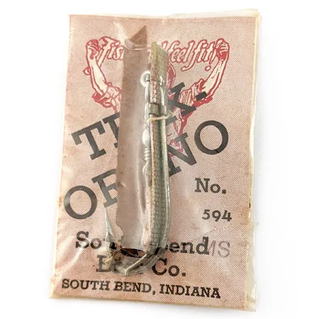 Šis 4,5 cm (1 3/4 colio) ilgio metalinis masalas pasižymi klasikiniu praėjusio amžiaus vidurio dizainu ir yra nudažytas sidabrine bei raudona spalvomis. 2 g (1/16 uncijos) svorio „South Bend Trix-Oreno 594“ buvo sukurtas žvejybai museline meškere; jis lengvesnis už sukrę, todėl jį lengviau valdyti. Šis egzempliorius, kurio prekės kodas 21699, yra nenaudotas ir išsaugotas originalioje popierinėje bei plastikinėje „South Bend Bait Co.“ (Indiana) pakuotėje. Skęsdamas masalas vibruoja tarsi gyvas vabzdys, o tai padeda pasiekti upėtakius ir kitas žuvis giliose duobėse ankstyvą sezoną arba karštomis dienomis. Traukiamas jis dėl savo konstrukcijos neria, kyla ir nardo vandenyje lyg mailius. Originaliose instrukcijose nurodyta, kad šis modelis turi 1 dydžio kabliuką ir puikiai veikia naudojant kartu su kiaulės odos juostele.